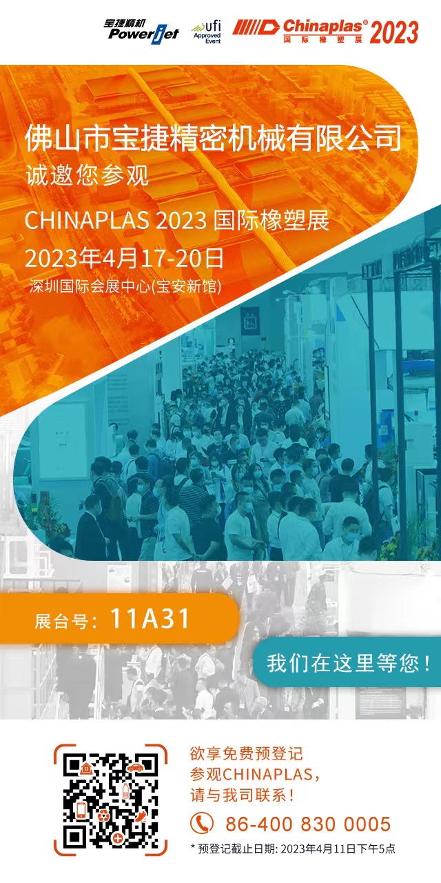 CHINAPLAS 2023國際橡塑展即將盛大開啟,寶捷誠邀你蒞臨11A31展位參觀交流!作為我司邀請的貴賓,您將獲得“免費入場碼”,可豁免RMB80元的入場費,請通過以下“免費門票領(lǐng)取方法”完成觀眾預登記手續(xù)。