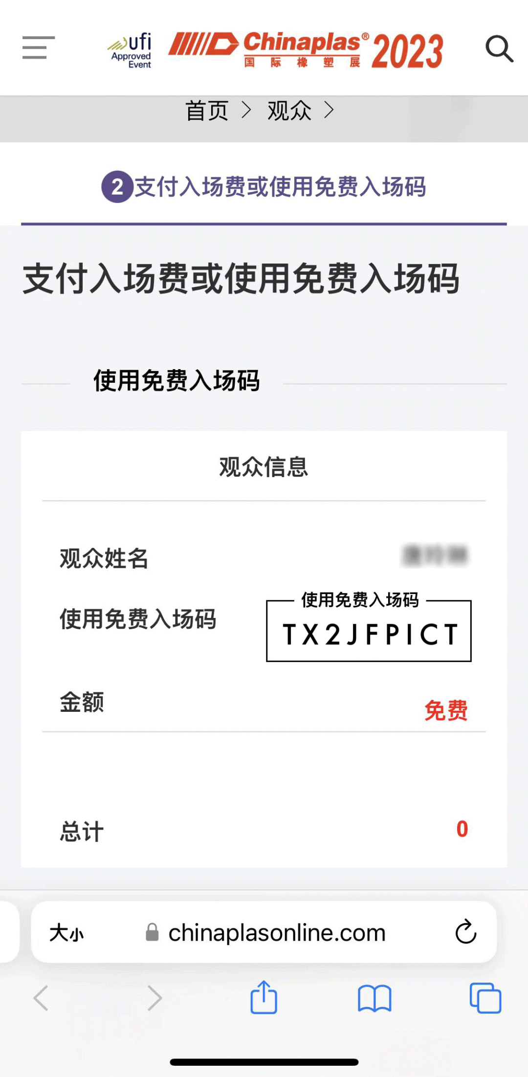 提交后,跳轉(zhuǎn)至[支付入場費或使用免費入場碼]頁面,將復制的免費入場碼——TX2JFPICT,粘貼至輸入框中并提交。