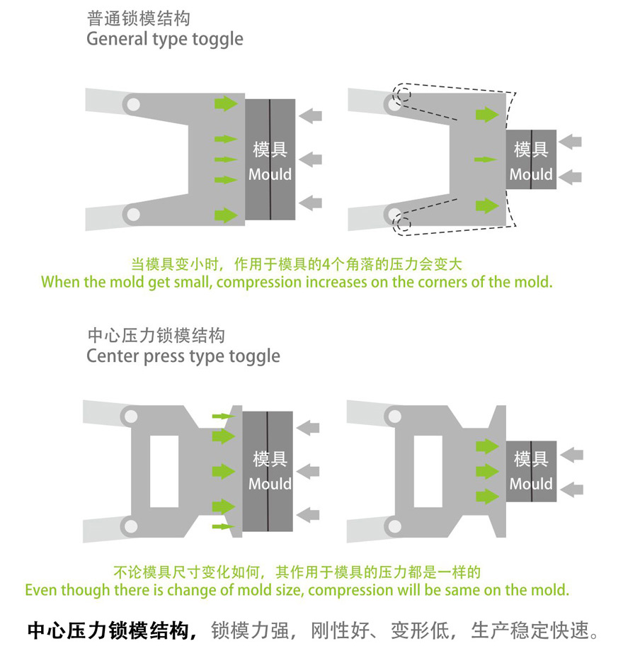 ·細(xì)長(zhǎng)筆桿同心度對(duì)鎖模結(jié)構(gòu)剛性和穩(wěn)定性要求高。